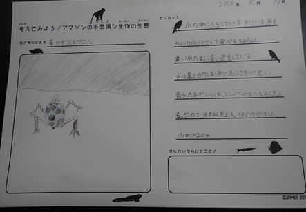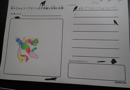 特徴的な生きものの生態を学んだあとに、新しい新種の生きものを自由に考えて絵を描くワークショップです。日本や海外で実施しています。参加者のみんなの考えた生きものを一部紹介しています。​(2018年のイベントレポート)